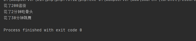 echo "花了".$this->time."分钟".$this->action."\n";