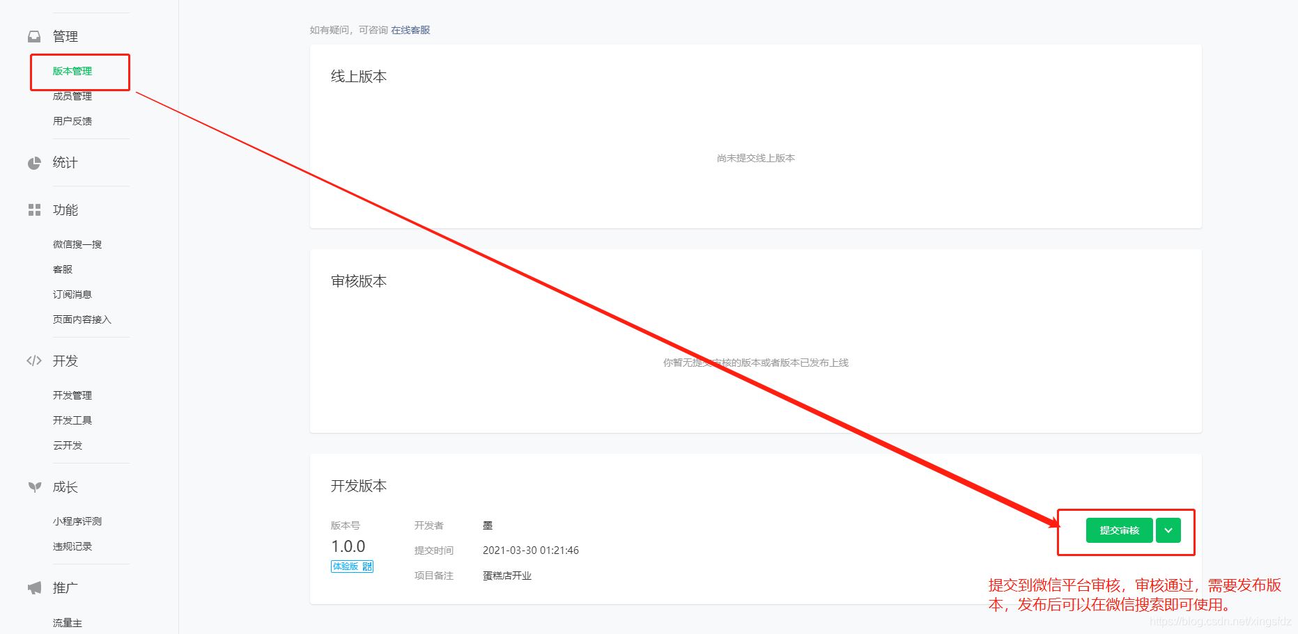 发布版本,需要审核通过后才能发布,审核一般24小时以内。