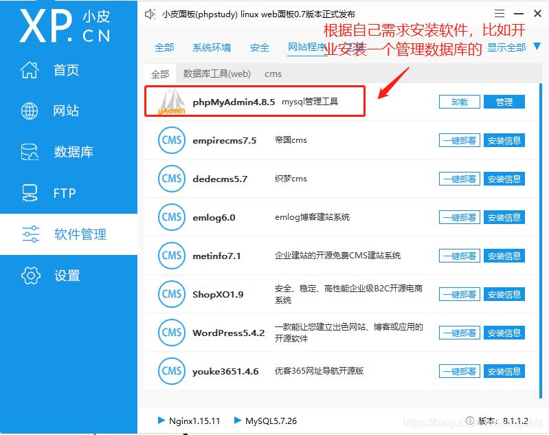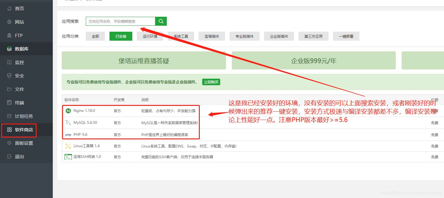 因为需要基于LNMP,所以需要安装nginx mysql php,这里强力推荐使用宝塔工具,一键操作安装,很方便。