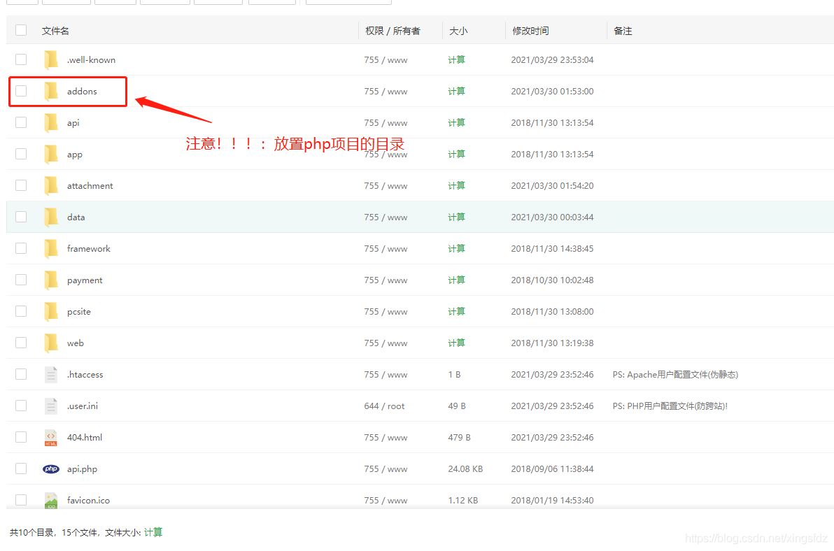 注意php项目或者模块放置目录: