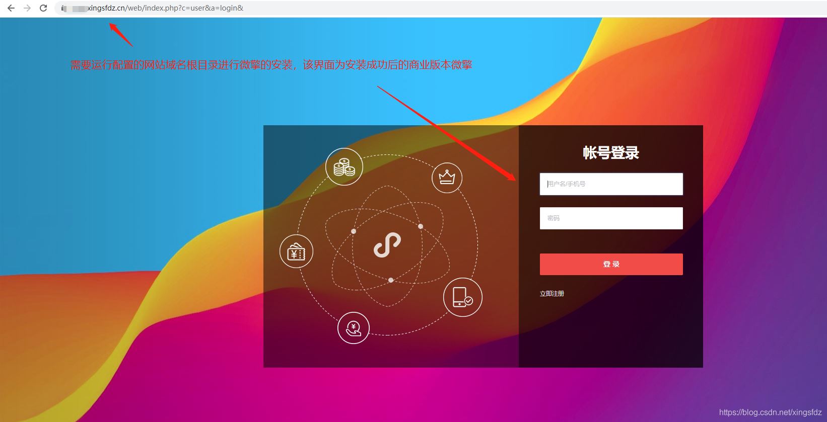 登录微擎: