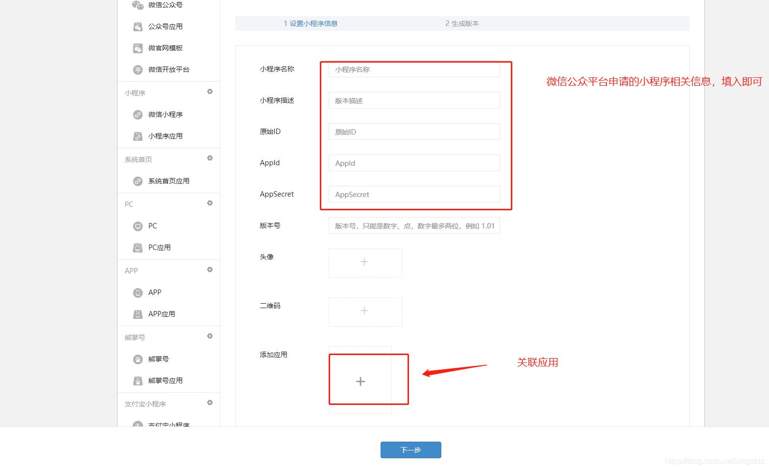 回到微擎,填完小程序的相关配置,生成版本后: