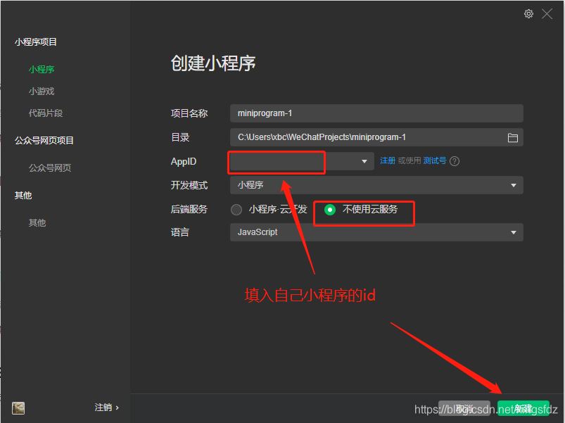 新建小程序
