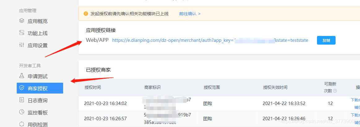 https://e.dianping.com/dz-open/merchant/auth?app_key=1ef0*****e3a8&redirect_url=https://*****/admin/Dian/get_auth&state=teststate&scope=[%22tuangou%22]