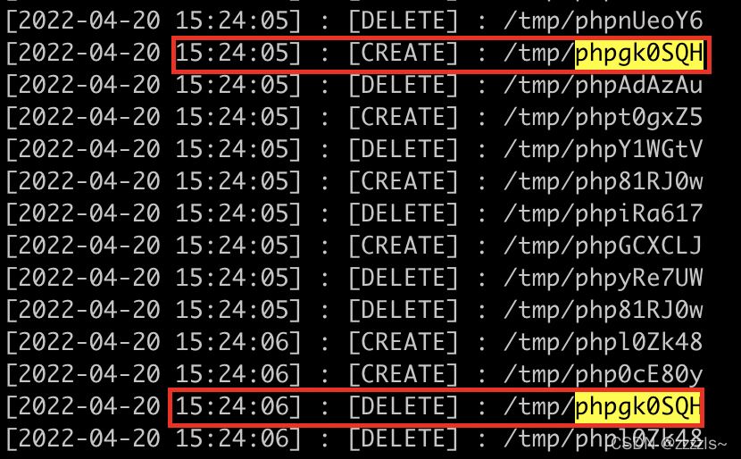 同时该过程也会打断 php 对临时文件的处理,虽然最终仍会被删除,但相较之前可以明显看出临时文件在磁盘的中存在的时间变长了!