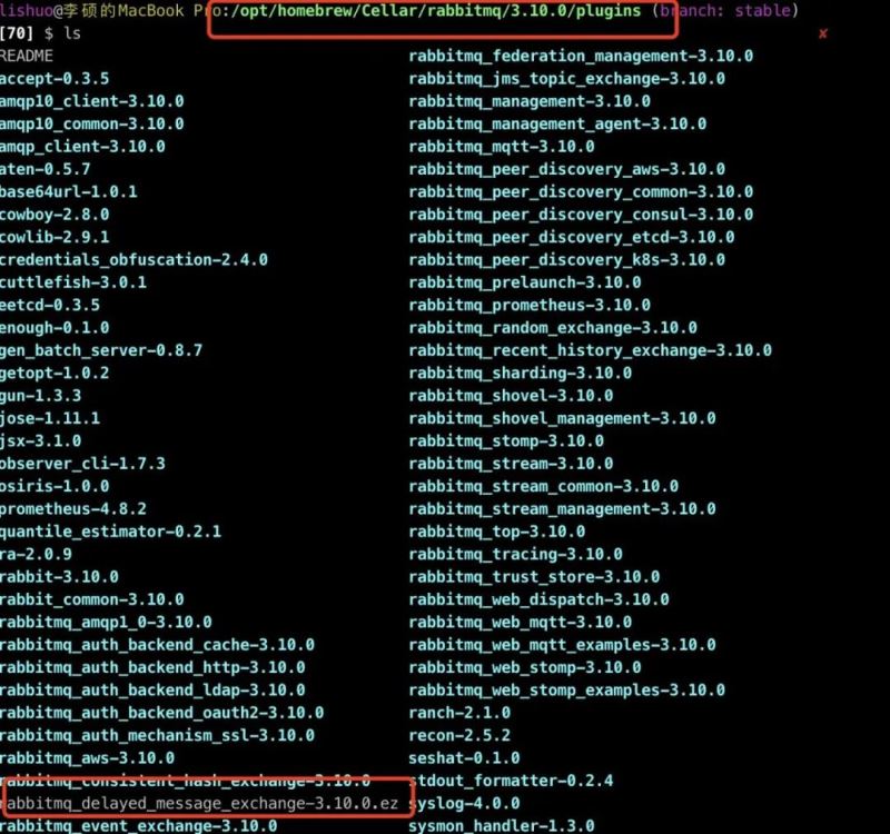 把下载好的文件移动到rabbitmq的插件plugins下,以我自己的Mac为例子,放到了如下路径