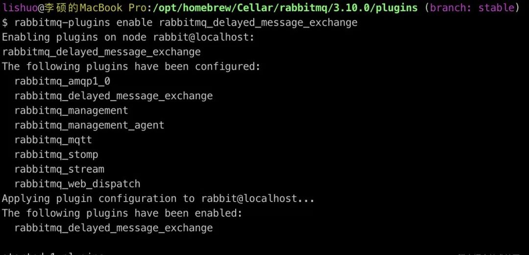 rabbitmq-plugins enable rabbitmq_delayed_message_exchange