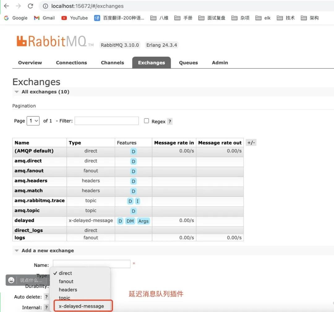 最后重启rabbitmq服务,并刷新查看exchanges交换机有没有该插件