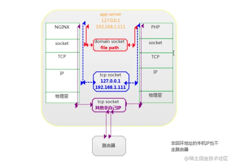 - 在 Linux 上,nginx 与 php-fpm 的通信有 tcp socket 和 unix socket 两种方式。