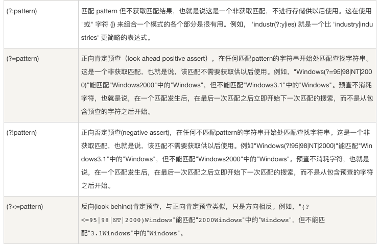第一个表达式是一个『非获取匹配』,即匹配括号,但并不获取括号;