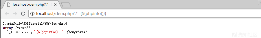 我们 var_dump 一下 $_GET 数组,会发现我们传上去的 .* 变成了 _* ,如下图所示:
