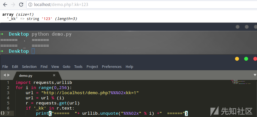 这是由于在PHP中,对于传入的非法的 $_GET 数组参数名,会将其转换成下划线,这就导致我们正则匹配失效。我们可以 fuzz 一下PHP会将哪些符号替换成下划线,发现有:(这是非法字符不为首字母的情况)
