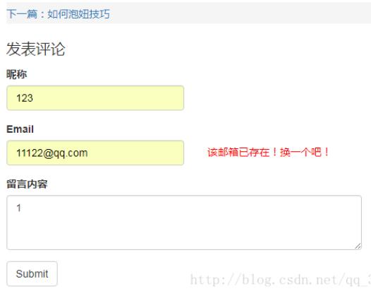 <input type="name" id="nickname" name="nickname" class="form-control" id="exampleInputname1" placeholder="用于评论昵称">