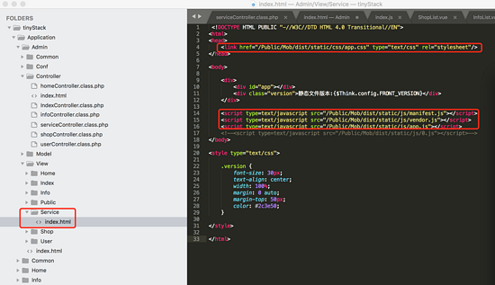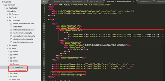 2.2 书写service的入口文件index.html 并将打包好的vue单页进行引入