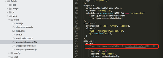 2.5 在终端输入npm run build 进行打包编译,因为之前我们添加了插件eslint,进行了代码格式检查所以会出现大量的警告,可以在webpack.base.conf.js中隐藏eslint的校验。 剔除校验前: