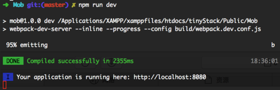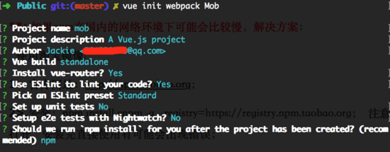 1.3.2 执行命令: vue init webpack Mob(你新建的项目名称/文件名称)执行之后将会 自动初始化一个文件夹 :Mob