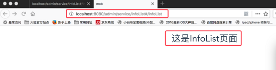 2.9 主要的vue单页的书写可以不用每次都使用npm run build 进行打包.我们只要使用vue提供的8080端口就可以直接调试vue单页了 我们在浏览器打开 http://localhost:8080/admin/service/infoList#/infoList