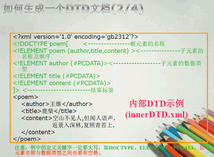 上半部分是DTD,下面是XML文档,文档要符合DTD。