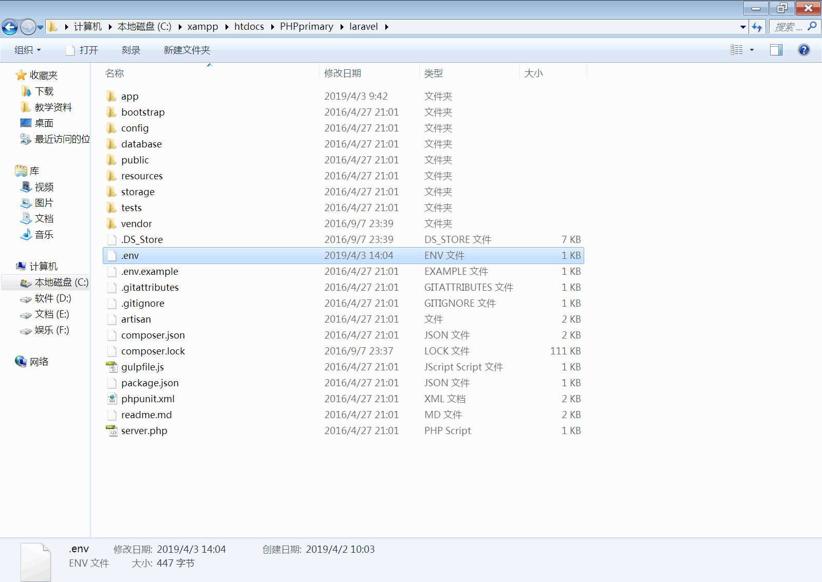 这个时候,我们的数据库已经创建完成了,接下来就是要输出他,输出他的时候就需要我们打开env这个文件了