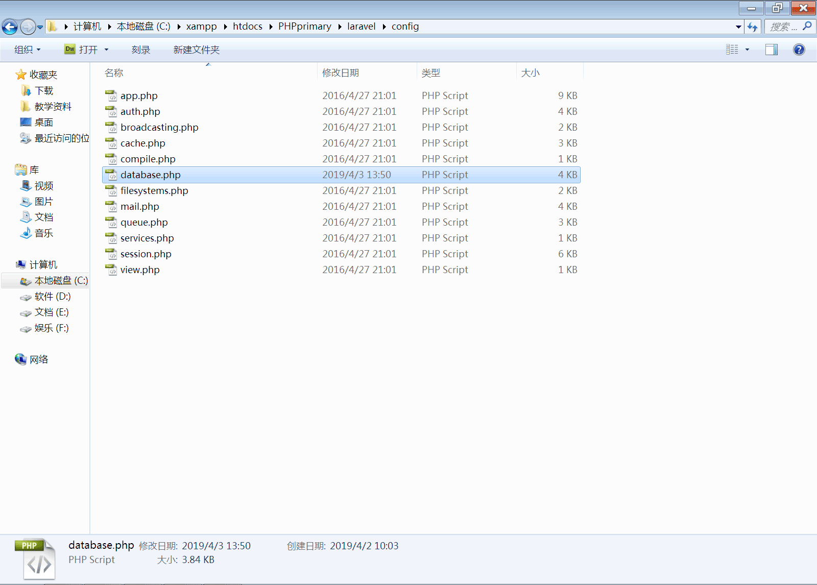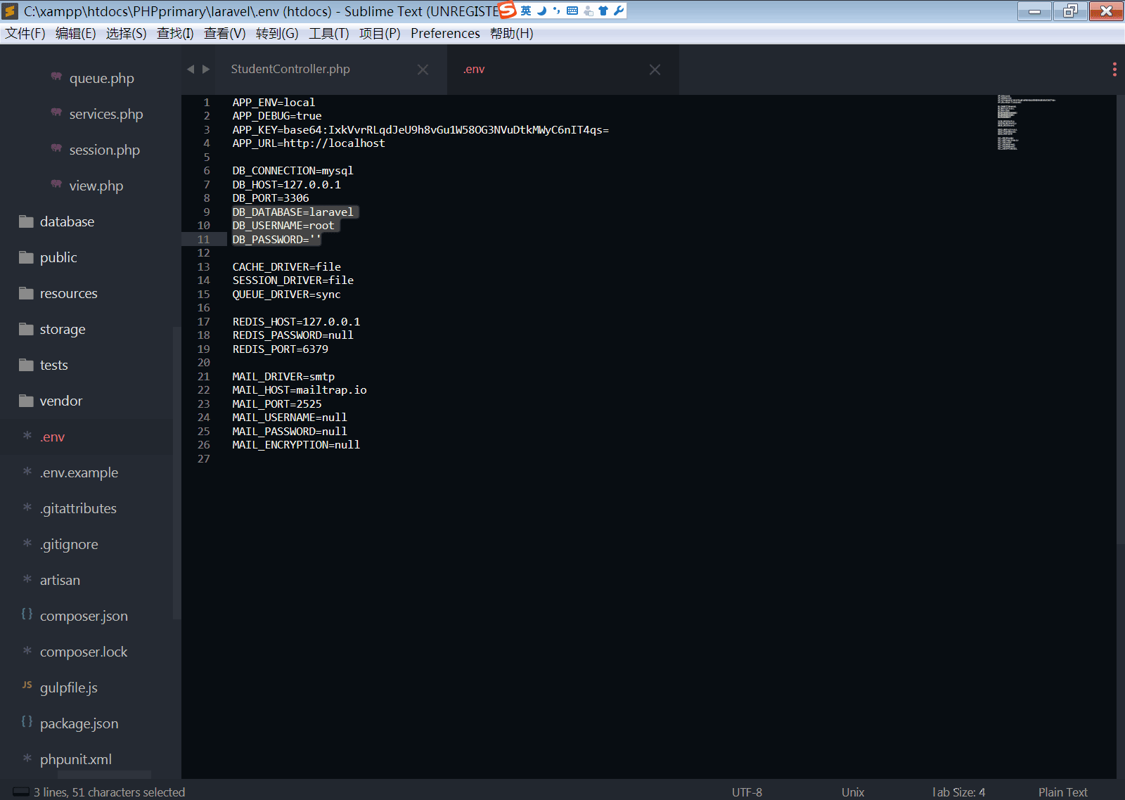 在这里,我们需要用到的有两个文件,第一个是congfig目录下的database.php,以及Laravel目录下的env文件