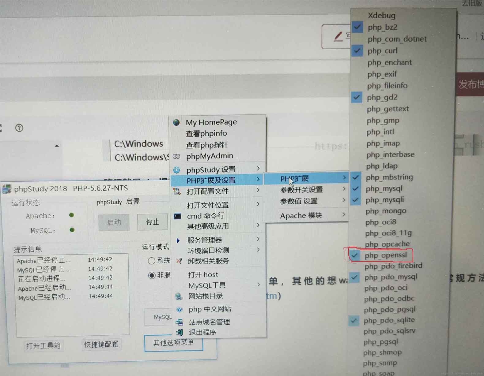 注:phpstudy开启openssl比较简单,其他的想wamp,xampp可以用常规方法(//www.mobange.com/article/50173.htm)