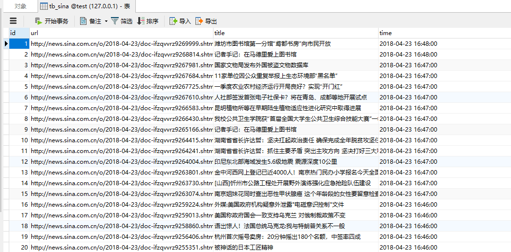 ) ENGINE=InnoDB DEFAULT CHARSET=utf8mb4 COMMENT='sina新闻';