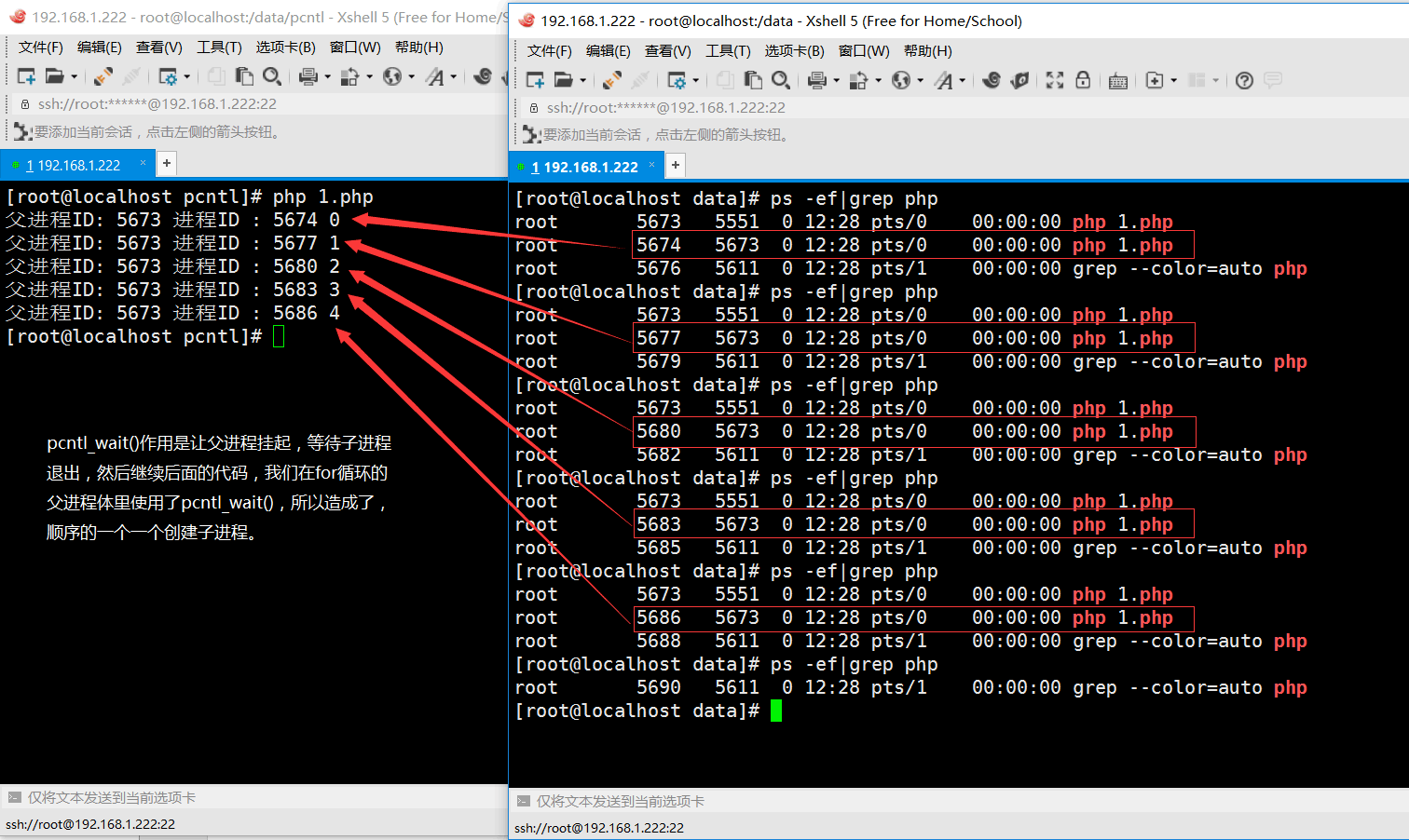 代码3.php与2.php效果一样,pcntl_wait()函数的作用只是用来让父进程等待子进程退出,默认情况下会阻塞主进程。