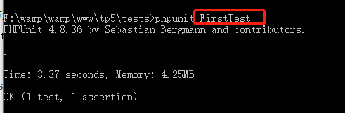tests目录下 执行 >phpunit FirstTest 命令 测试文件命名