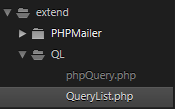 #首先应该下载TP5框架,然后在extend里面建立一个文件夹命名为QL,再去官网下载QueryList,然后把phpQuery.php 和 QueryList.php 两个文件放在QL文件夹下,如图: