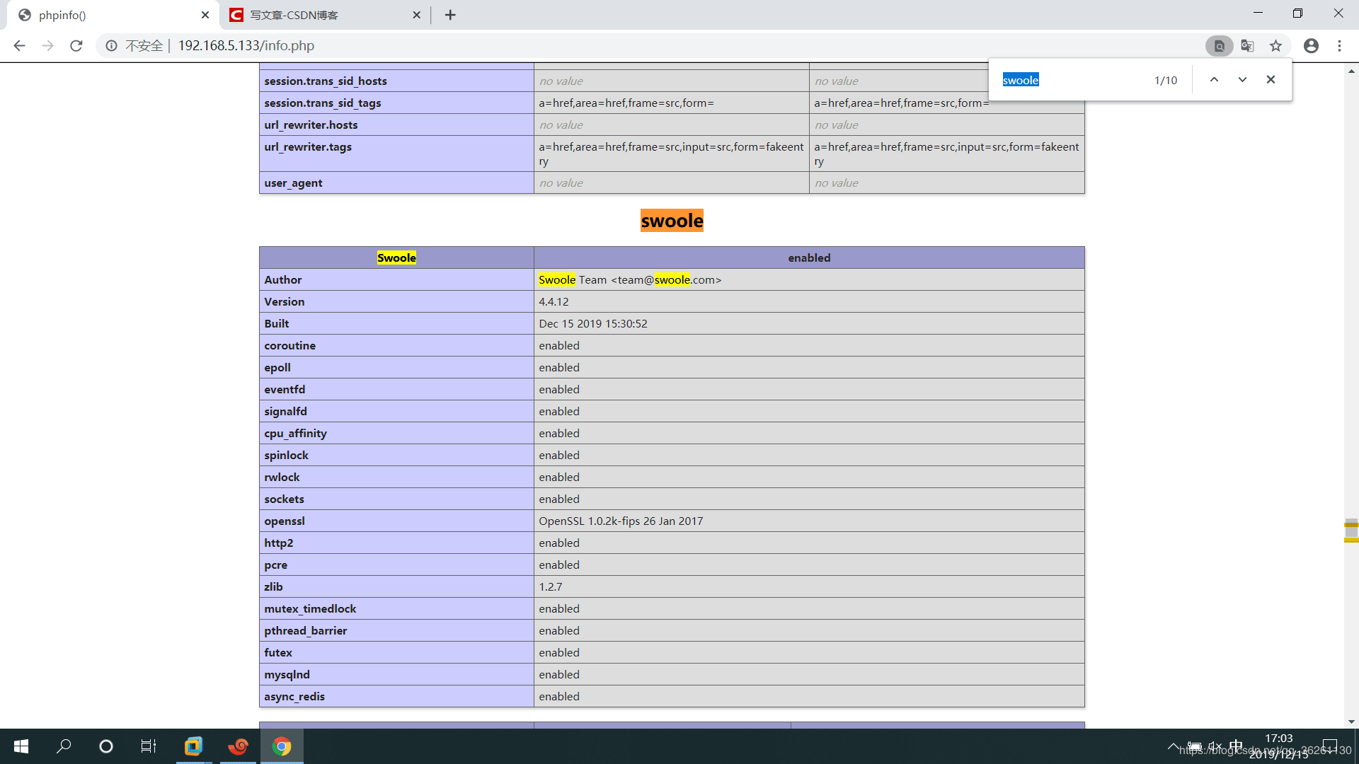 3、如果使用phpinfo()无法查看swoole,请使用命令service httpd restart重启