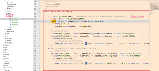 if(C('URL_MODEL')==1) {// PATHINFO 模式URL下面 采用 index.php module/action/id/4