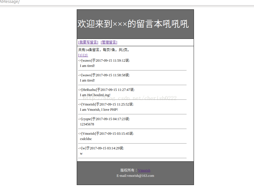 本文标题为:PHP+MySql实现一个简单的留言板