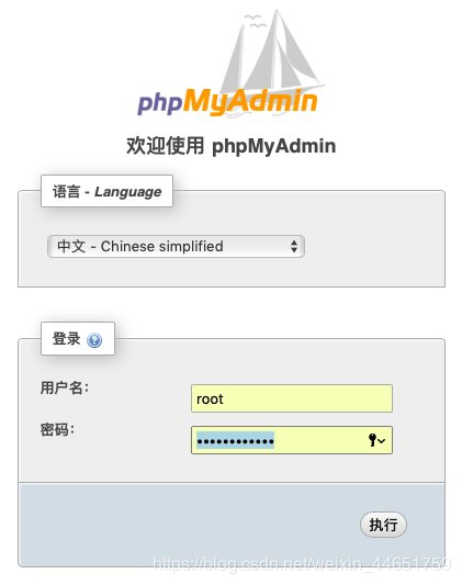 小编这里是通过phpmyadmin可视化界面创建的数据库和表单,进入ip/phpmyadmin后登陆数据库: