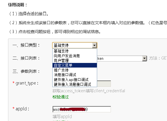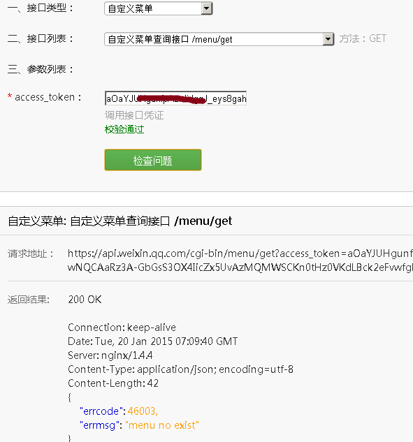 配置菜单前,首先要拿到access_token,它的有效期为2小时。如图点击获取access_token