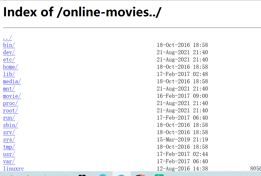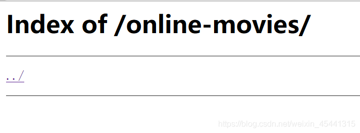 6、发现可以利用的漏洞,因为有一个autoindex on也就是开启了目录遍历,我们可以访问这个/online-movies/,访问出现如下,再点击…/发现要进行验证,把login改为1后页面空白,我通过百度发现要/online-movies/…才能遍历(不清楚为什么)