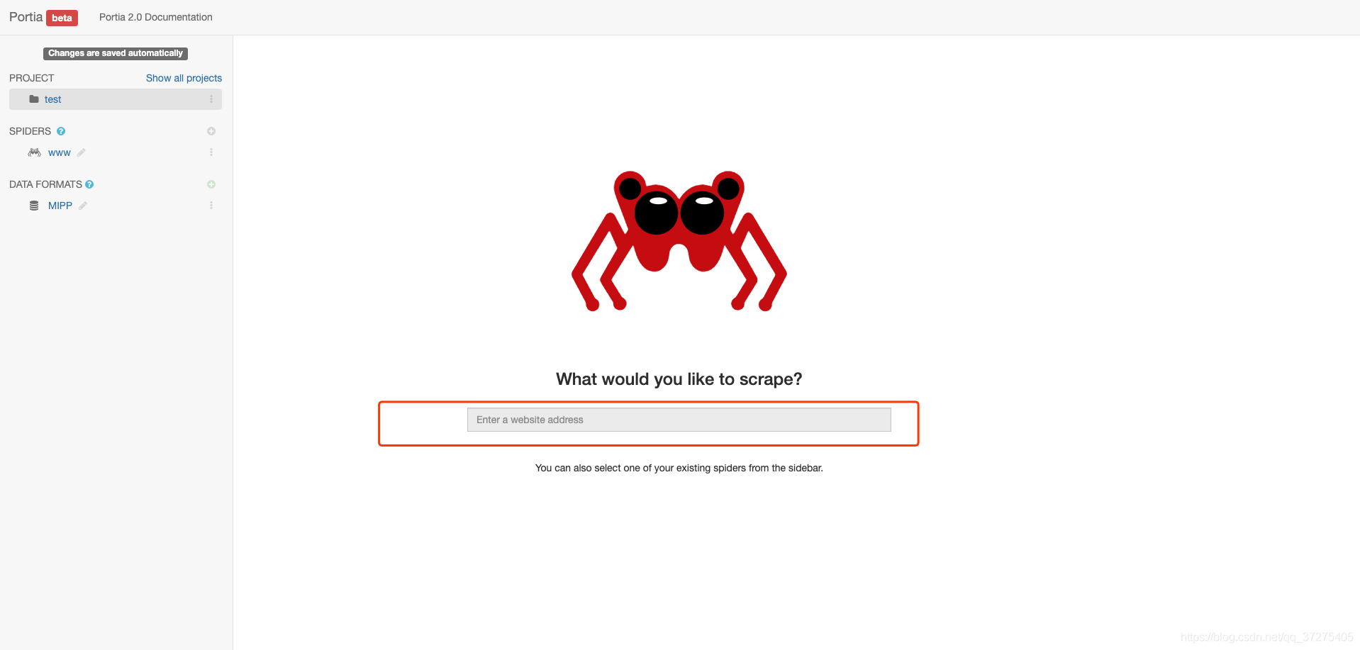 Portia安装完成以后使用浏览器打开http://localhost:9001, 在create a new project 中输入项目名