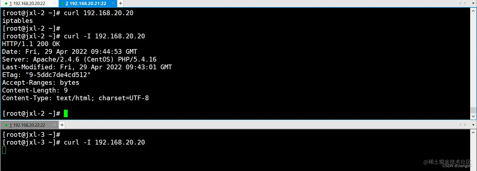 [root@jxl-1 ~]# iptables -t filter -I INPUT -s 192.168.20.21 -d 192.168.20.20 -p tcp --dport 80 -j ACCEPT