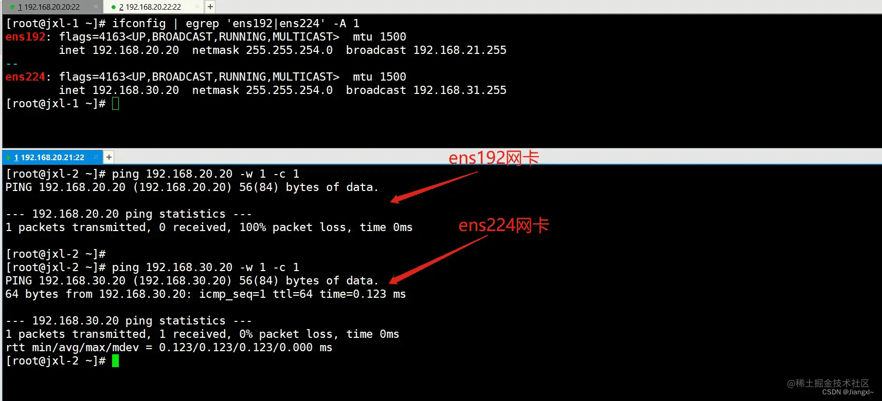 在其他主机ping防火墙主机的ens192网卡,发现不通,但是ens224网卡就通。