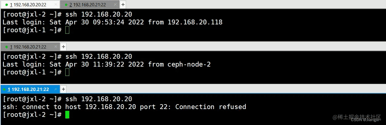 [root@jxl-1 ~]# iptables -t filter -I INPUT -p tcp --dport 22 -m connlimit --connlimit-above 2 -j REJECT