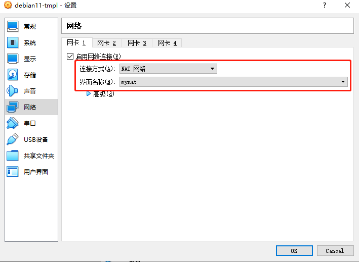 配置之后,配置自己的虚拟机网络,使用这个刚配置的网络。