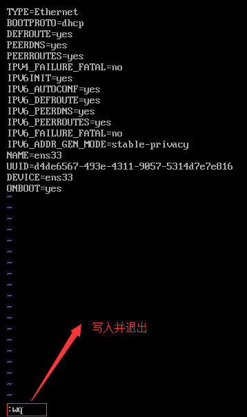 先按一次键盘上面的退出键(Esc),在输出键盘上面的冒号“:”,然后输入wq。w:write表示写。q:quit表示退出。