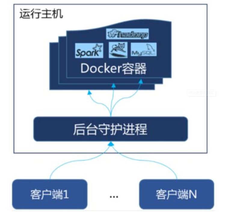 - Docker客户端转发命令给宿主机上的Docker守护进程(