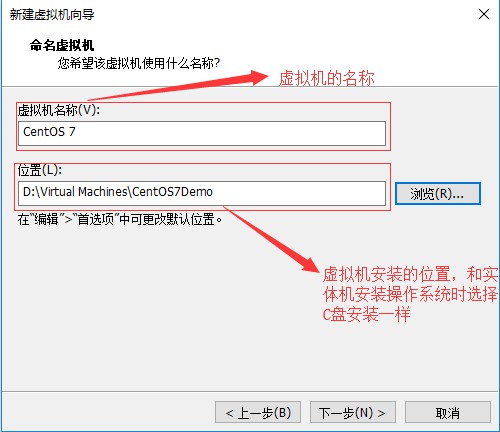 五、在命名虚拟机界面,设定虚拟机的名称,选择虚拟机文件安装的位置,然后点击“下一步”: