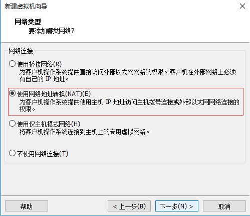 八、进入选择网络类型界面,这里选择默认配置(虚拟机安装好以后可以在根据自己需要更改网络配置),然后点击“下一步”: