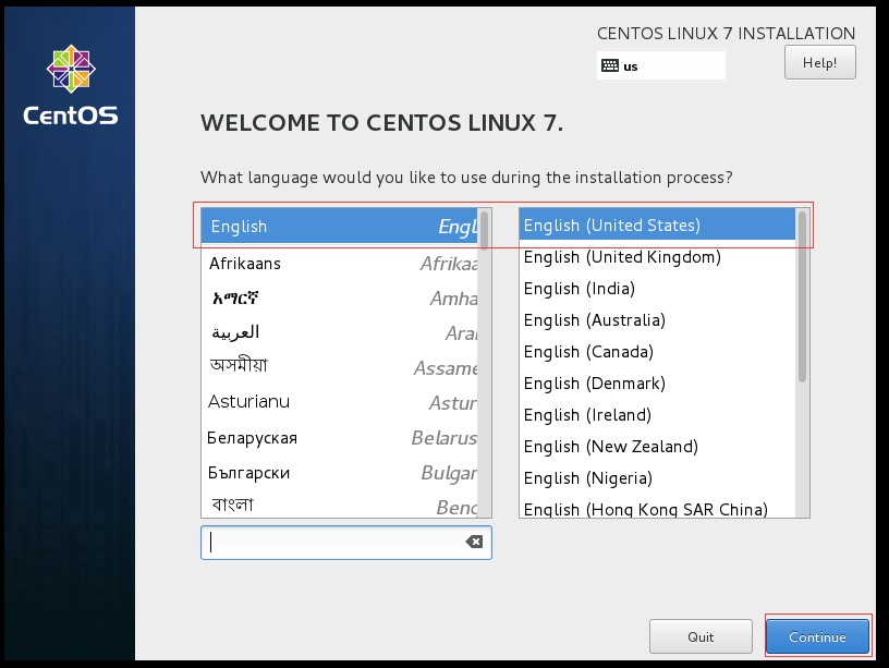 十六、进入选择语言界面,这里选择默认(可以根据自己需要进行修改),然后点击“continue”按钮进入下一界面: