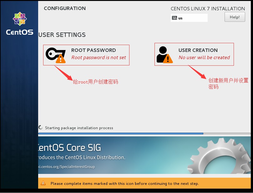 二十、进入下一界面,这里需要给root用户创建密码,或者新创建一个用户并设置密码,这里选择给root用户创建密码: