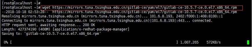 命令:wget https://mirrors.tuna.tsinghua.edu.cn/gitlab-ce/yum/el7/gitlab-ce-10.5.7-ce.0.el7.x86_64.rpm