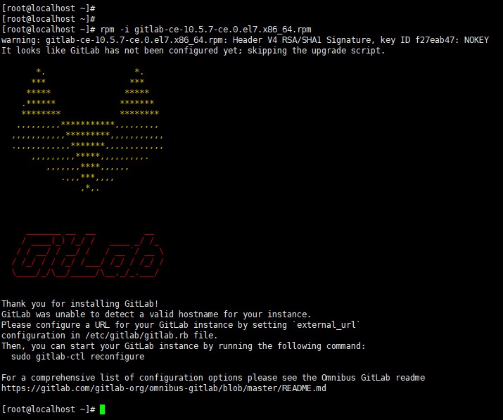 命令:rpm -i gitlab-ce-10.5.7-ce.0.el7.x86_64.rpm