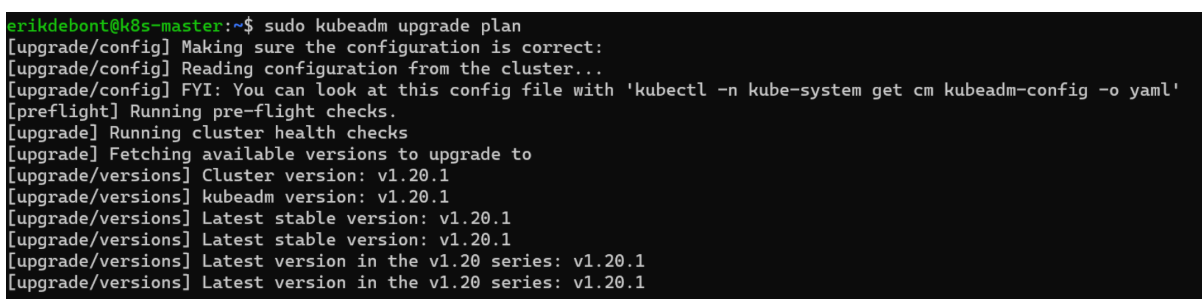您可以运行以下命令检查kubeadm是否正常运行。通过运行以下命令,该命令将检查集群是否可以升级。
